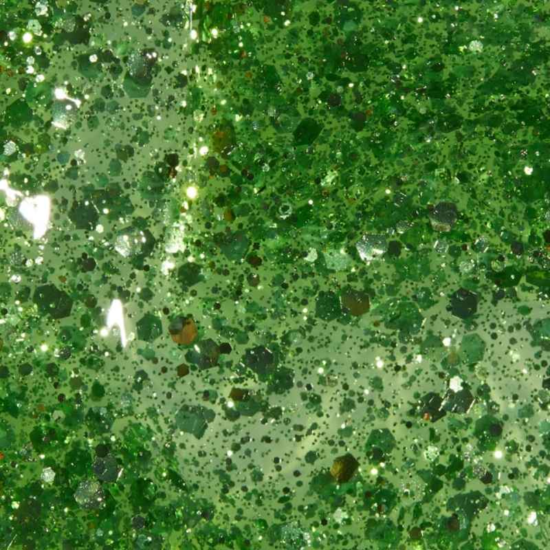 A long-lasting green glitter jelly nail color that drops confetti on your performance.